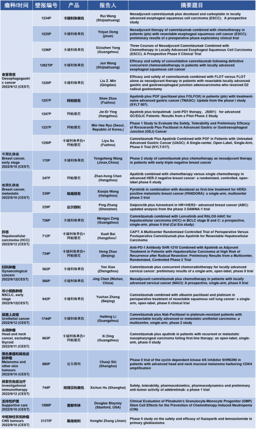 作为从事创新和高品质药物研发的国际化制药企业,AG百家乐医药的研究成果在2022 ESMO大会上还收获了25项壁报形式的报告。其中,食管胃癌领域共有9项研究入选,研究的方案主要是卡瑞利珠单抗或卡瑞利珠单抗联合阿帕替尼,通过与化疗或放化疗联用,新辅助治疗食管鳞癌或胃癌。2022年9月12日(CEST),让我们齐聚ESMO大会,共同领略食管胃癌研究领域的学术盛宴。此外,AG百家乐医药达尔西利、吡咯替尼、阿得贝利单抗等创新药还有4项乳腺癌研究、3项肝癌研究及其他领域的9项研究都将会以壁报展出,让我们共同期待!